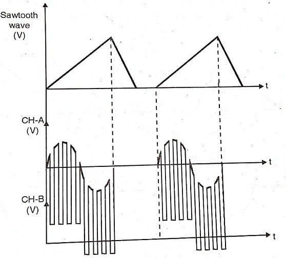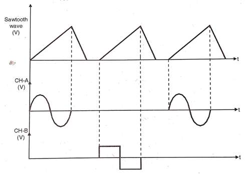 In the alternate mode, the electronic switch connects the two channels A and B alternately in the successive cycles of the time base generator. Thus two channels are alternately connected to the vertical amplifier.