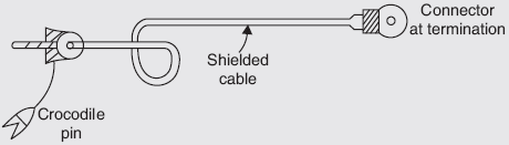 - The tip of the probe has crocodile clips or other means of connecting the oscilloscope to the test circuit.