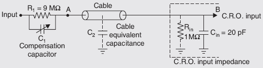 - Let C2 be the probe cable equivalent capacitance. The input resistance and capacitance of CRO can be referred to as Rin and Cin. The typical values of Rin and Cin are 1 MW and 20 pF.