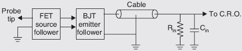 - The active probe consists of an active element like FET source follower circuit and BJT emitter follower circuit along with a co-axial cable termination.