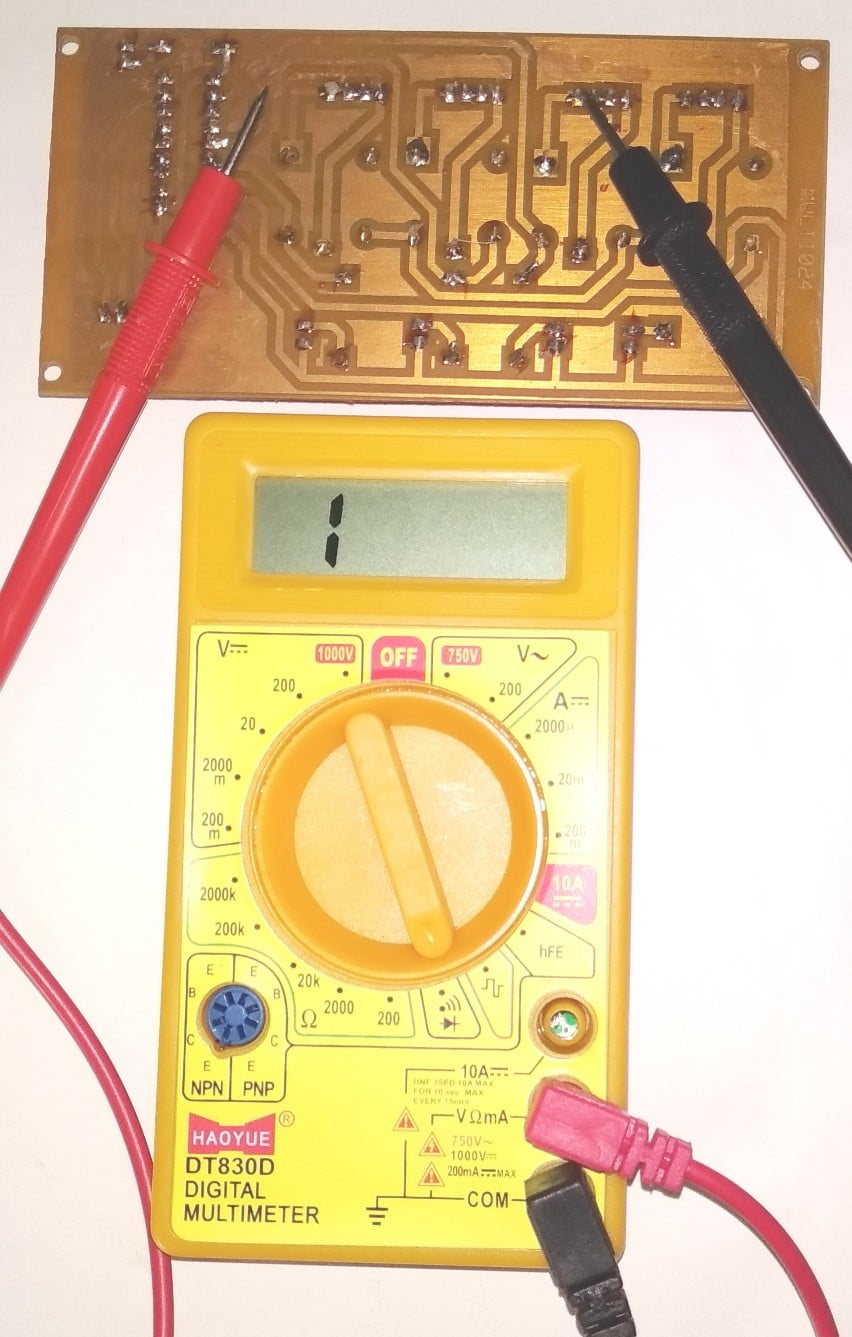- Connect the first probe of multimeter at one end and second probe on the last point of the suspicious traces. It does not matter what is the polarity of connections. You will have to press strongly to make the electrical connection between the multimeter probes and the traces. If a beep sound produces, there is a short. Repeat this process for all suspicious traces.